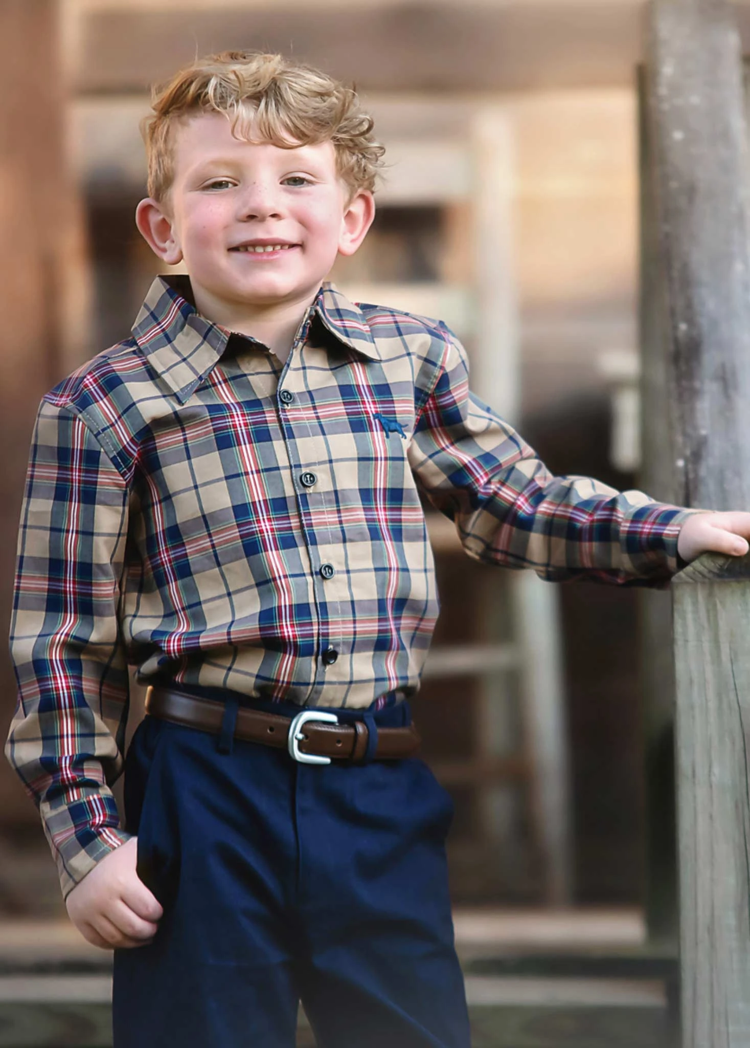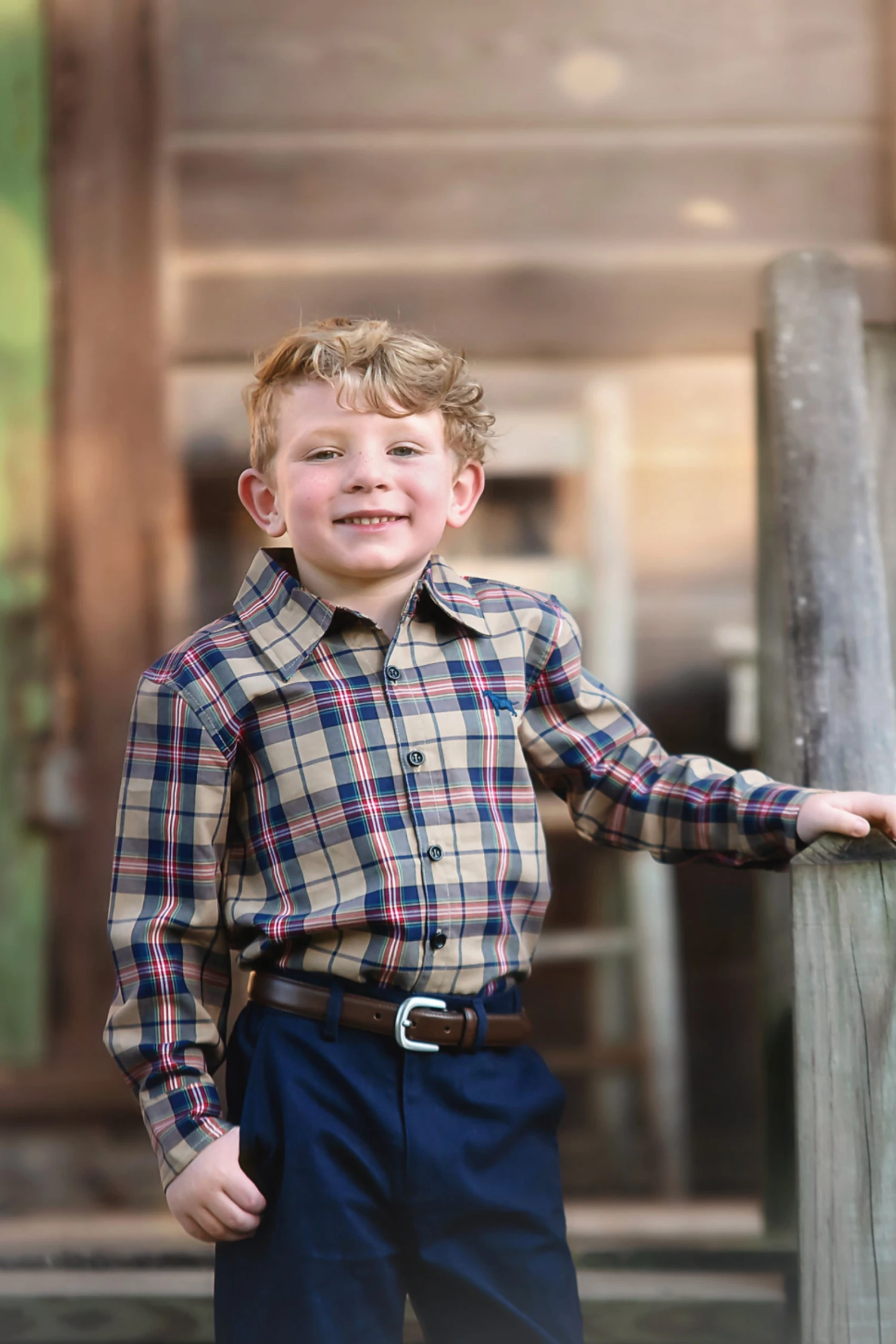 The most darling button-down for your little man! This classic long sleeve is made to be paired with just about anything, and finished off with a dog emblem. Pairs wonderfully with any of our suits or pants!Â