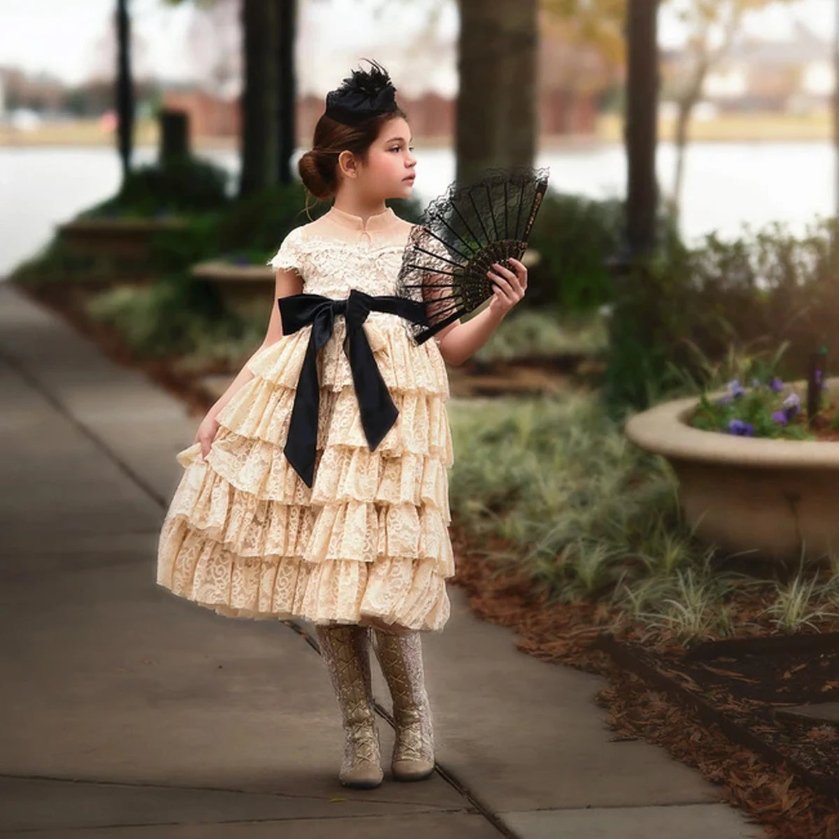 This darling black pillbox hat is the perfect addition to her outfit! A great addition to any photo shoot, this hat is outfitted with clips to secure it in place.