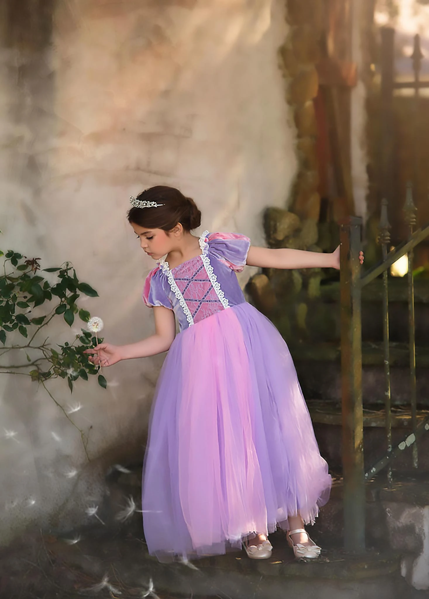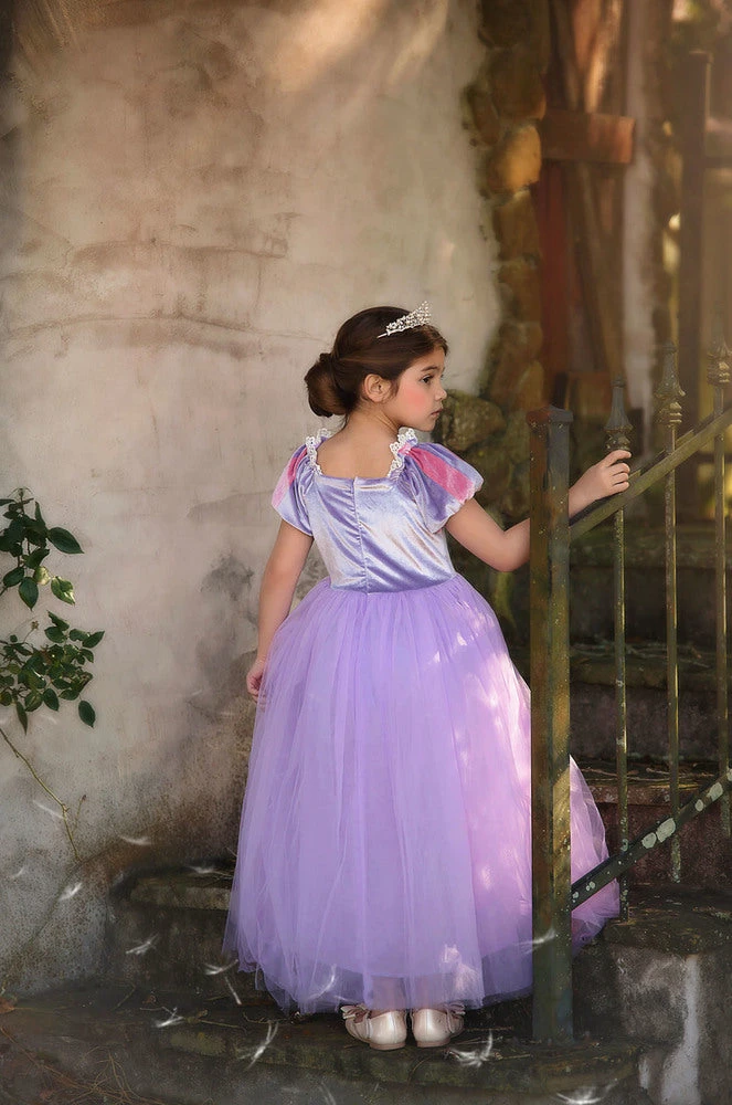 She will be the fairest in all the land in this darling princess dress.  Full of details and whimsy, this is not your average costume. Incredible quality and a perfect keepsake for years to come. Don’t forget to add our tiara and our wand for just the right accessories for the princess! These are soft and never scratchy, we understand tactile sensitivity and always design using the softest materials, then we fully line the dresses with soft cotton. NO GLITTER is EVER used on any of our items. TIARA AND WAND ARE SOLD SEPARATELY. 100% poly, machine wash, hang dry. Â