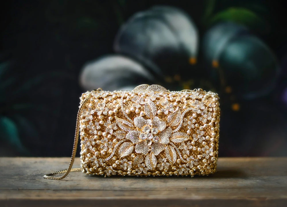 *Crystal covered brass handled purse