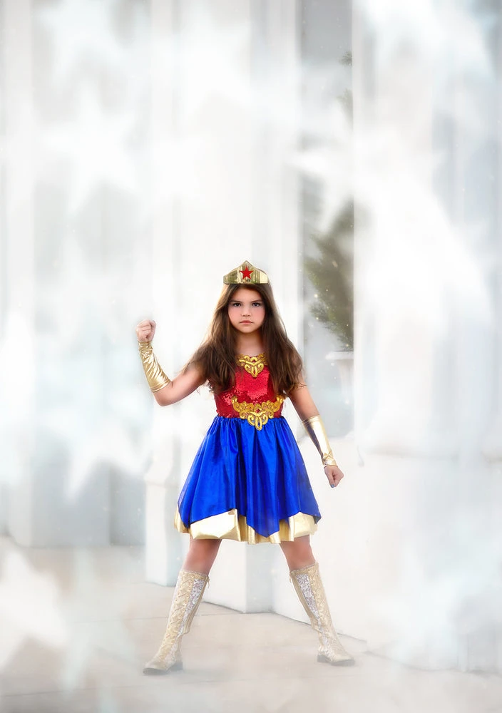 She has come to save the day! This darling Hero costume comes complete with the dress, gloves and star headband.