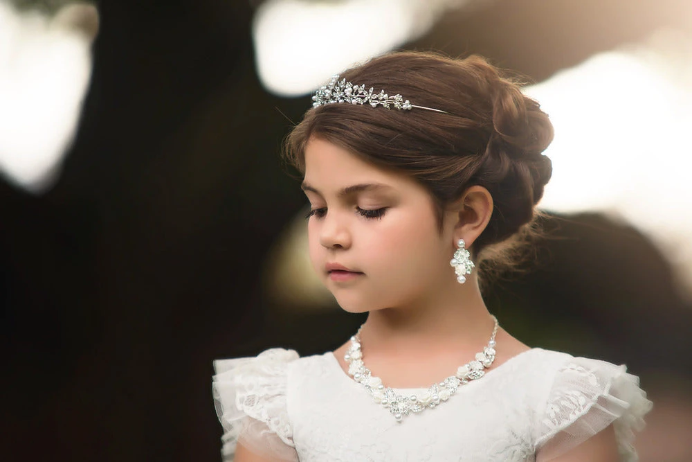 Fit for the princess and brides alike, this necklace and earring set is stunning! Hypoallergenic posts.
