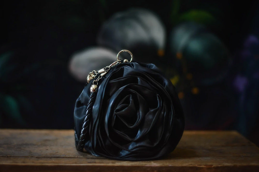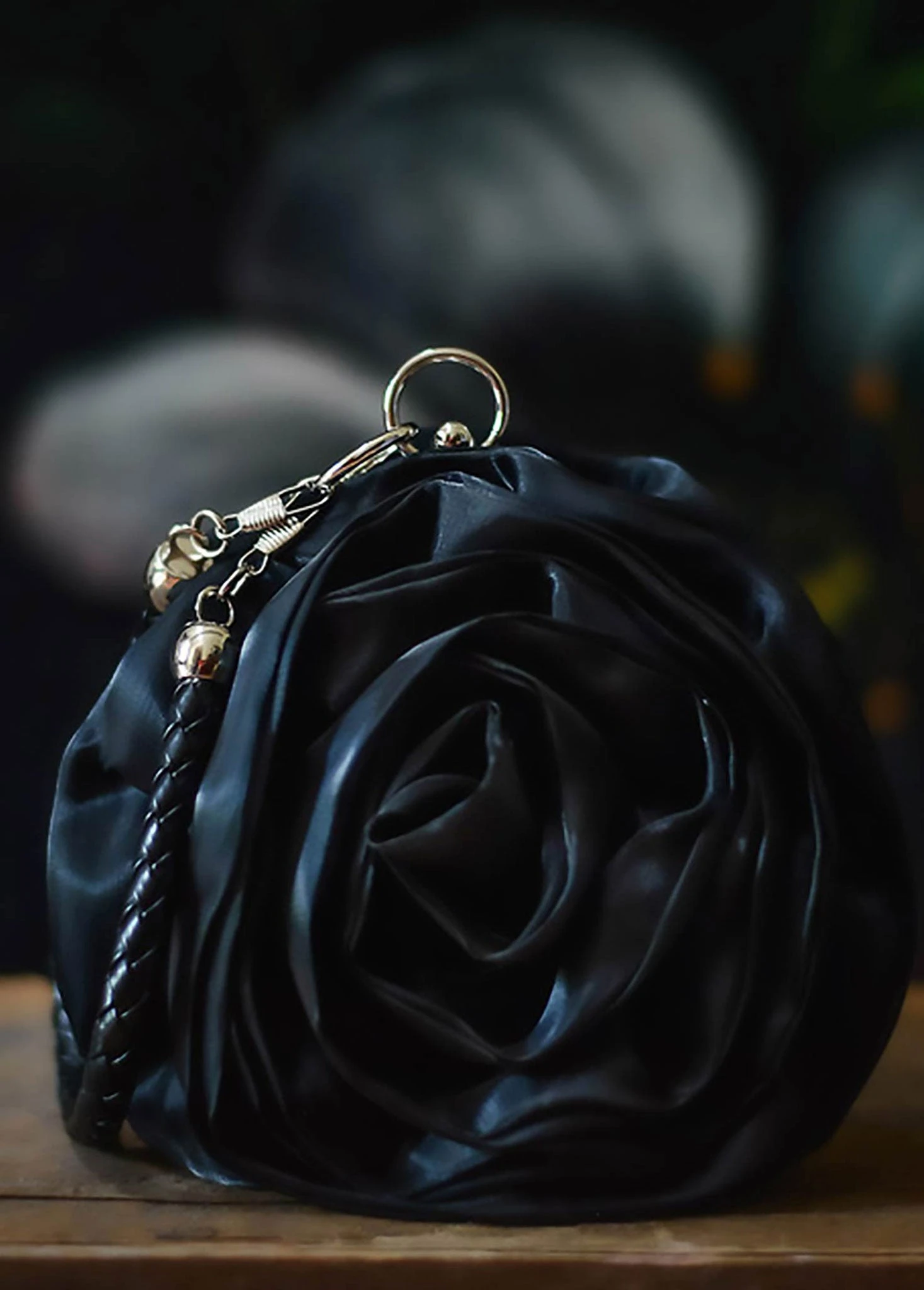 Beautiful layers of soft polyester are sewn to create an elegant rose design, and finished off with a rope chain.Â