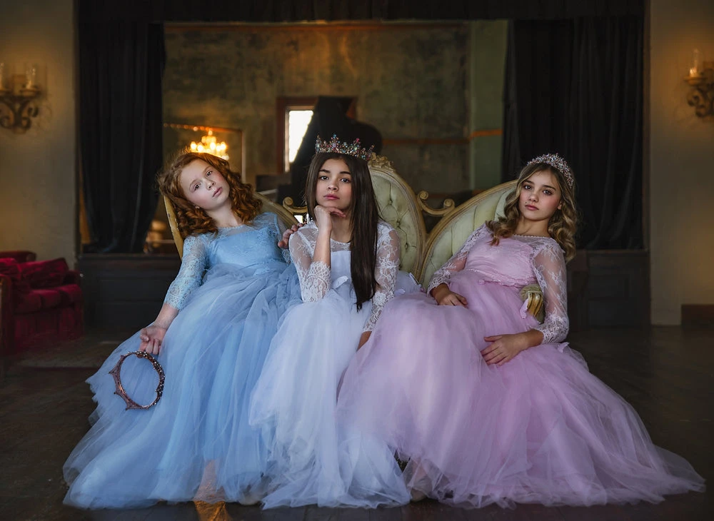 *A blue Mariposa gown with a long train, graced with butterflies and a pearl center.