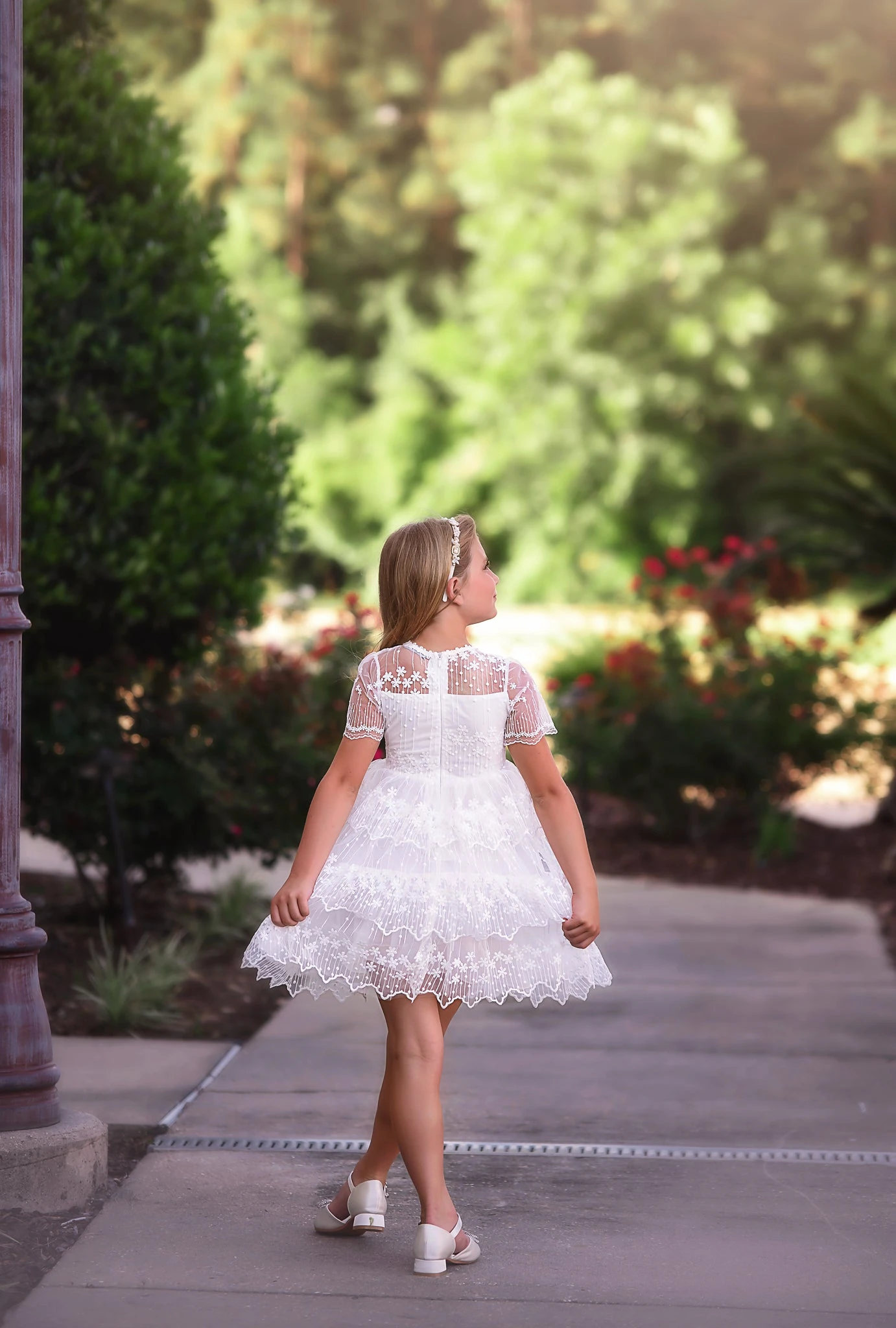 Meet Samara! Featuring an oh-so-elegant a-line cut, eye-catching embroidered ruffles, a delicate neckline featuring floral embroidery, and so many other stunning details, she’ll be the talk of the town with this show-stopper. Perfect for those warmer Spring and Summer days!Â