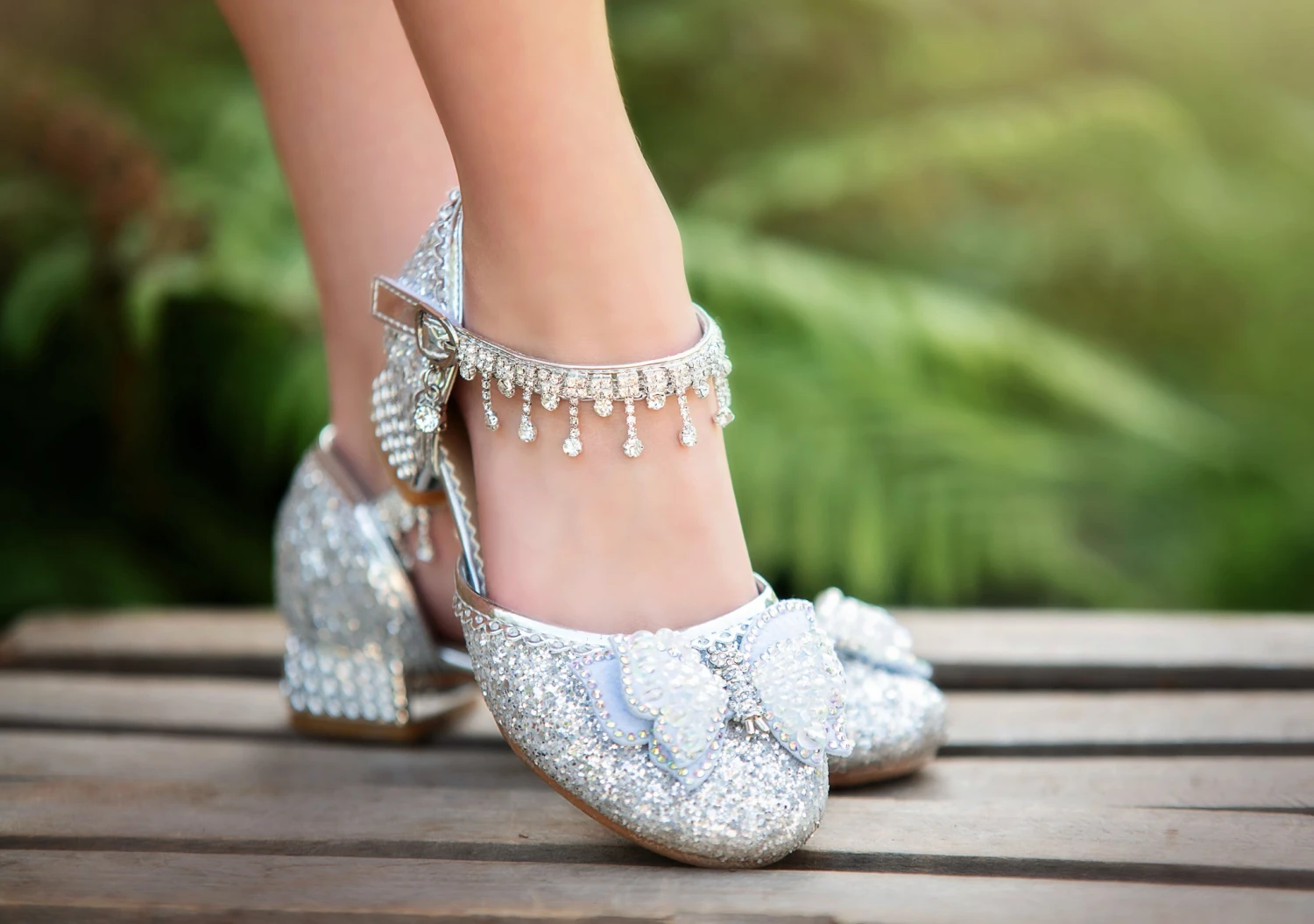 She will be the talk of the town in these fashionista heels! From the jewel adorned butterfly and sparkly ankle strap, down to the jewel encrusted heels, these shoes are a must for the little fashionista in your life. Super soft and comfy for delicate little feet, these will be her favorite, we promise!