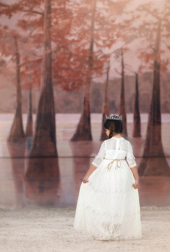 This vintage inspired lace frock is absolutely stunning in person.  The color is a dreamy white and photographs amazing.  The lace is soft, not scratchy and has a French eyelash edging, creating a perfect touch of vintage whimsy.  The dress is fully lined with soft cotton and has a back zipper.  The floral braided rope belt is completely removable and self ties in back for just the right touch of sweetness. 100% poly self, 100% soft cotton lining. Machine wash, hang dry. Â