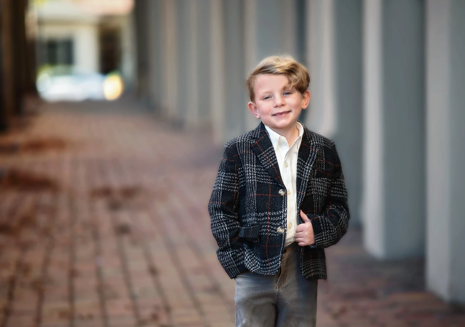 The most darling blazer to cap off his outfit! This relaxed-fit blazer features two front pocket flaps and is finished off with two front buttons.Â
